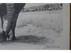 Durch die hochstehende Sonne ist der einsame Elefantenbulle besonders schattiert. Das überzeugt mich zu einer Zeichnung. So steht der Elefant richtig gut hervor. Männliche Elefanten wandern im Gegensatz zu den Weibchen alleine durch die Savanne, weshalb sie besonders majestätisch wirken.