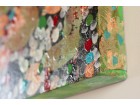 The original idea for this artwork was based on a desire to be by the sea, using a bird’s eye view of a lighthouse as the starting point. This circular form of visual representation in the painting also makes reference to the traditional Spanish technique “mandalas” of drawing circles. From this, Conny then changed direction to describe the balance within nature by introducing imagery of butterflies and bird’s wings.
